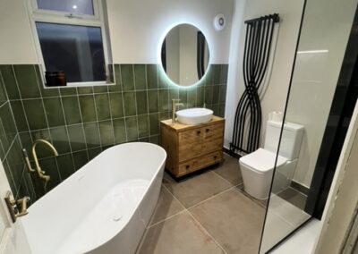 The refurbishment included the meticulous selection and installation of high-quality tiles, completely refreshing the bathroom’s appearance. The choice of tiles not only added a touch of elegance but also guaranteed long-lasting durability. Our expertise in tiling is something we take great pride in, and the results of this project reflect our commitment to excellence.